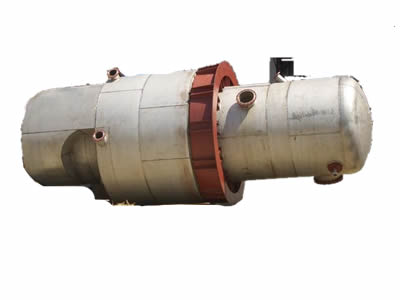 噴淋式飽和器是一種適于焦化工藝流程中,采用硫銨法凈化回收硫的噴淋式飽和器裝置。噴淋式飽和器包括上筒體、下筒體、外筒體、內(nèi)筒體、螺旋體、環(huán)形板、噴嘴、筋板、支座等,其中上筒體與筋板焊接連接,筋板與內(nèi)筒體焊接連接,螺旋體焊接連接在外筒體和內(nèi)筒體上,環(huán)形板焊接在外筒體內(nèi),若干個噴嘴裝置在環(huán)形板上,錐形體焊接在外筒體上,下筒體焊接在錐形體上,橢圓封頭焊接在下筒體上。本實用新型無內(nèi)襯,耐腐蝕,設(shè)備整體重量輕,占地面積小,使用壽命長,煤氣凈化率高,工藝流程簡捷,生產(chǎn)效率高。 硫銨工段采用噴淋式飽和器生產(chǎn)工藝:來自脫硫工段的煤氣經(jīng)預(yù)熱器進入飽和器,在飽和器上段分兩股進入環(huán)形室,被循環(huán)母液噴灑后,煤氣合成一股進入后室被母液噴淋,再進入飽和器內(nèi)除酸器,分離煤氣所夾帶的酸霧,*后送終冷洗苯工段。